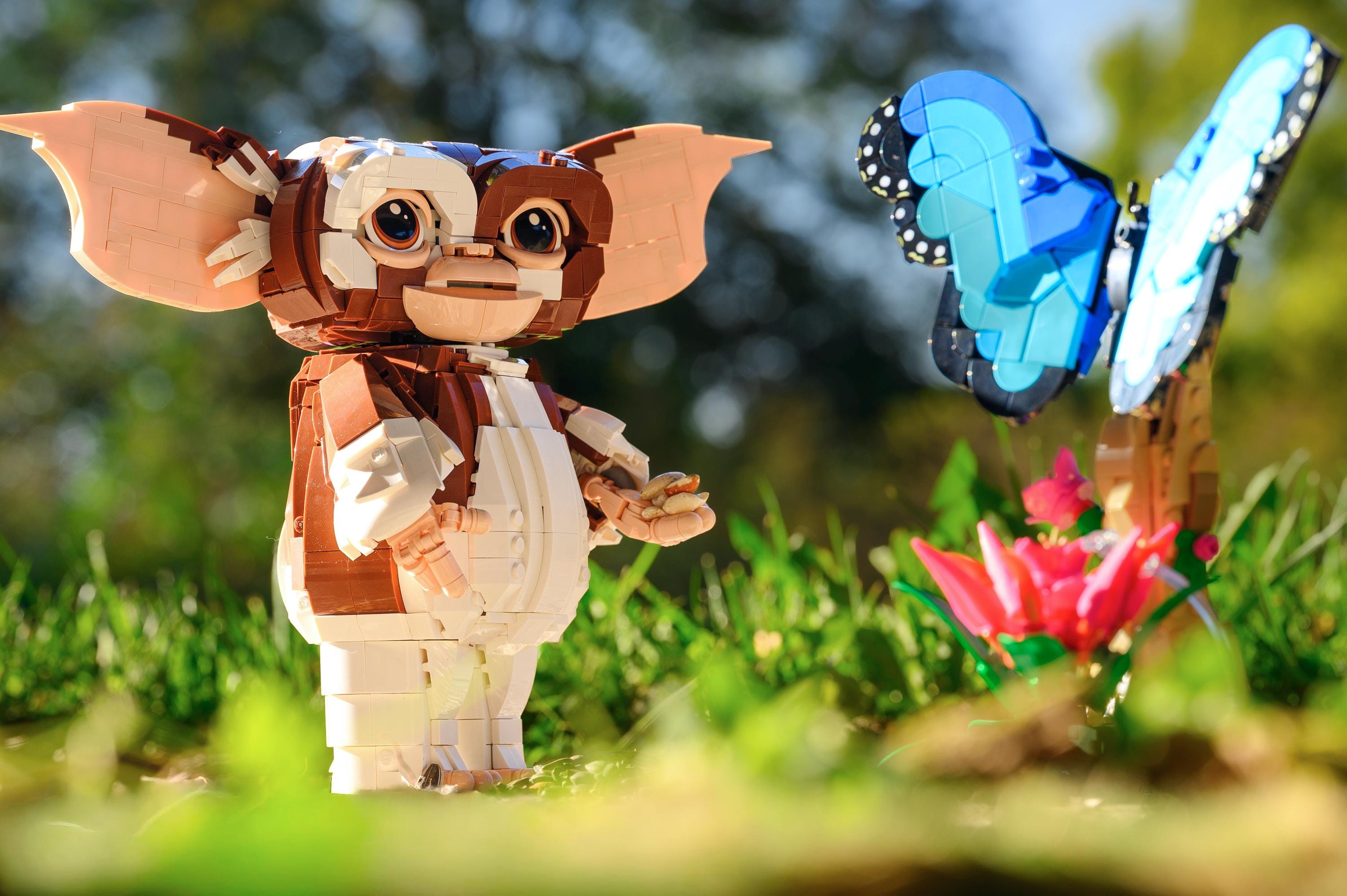 🎁 Keywords: gizmo lego art, gremlins wall decor, lego photography print, whimsical pop culture art, cute movie character gift, butterfly photography, lego scene photo, nostalgic geek art