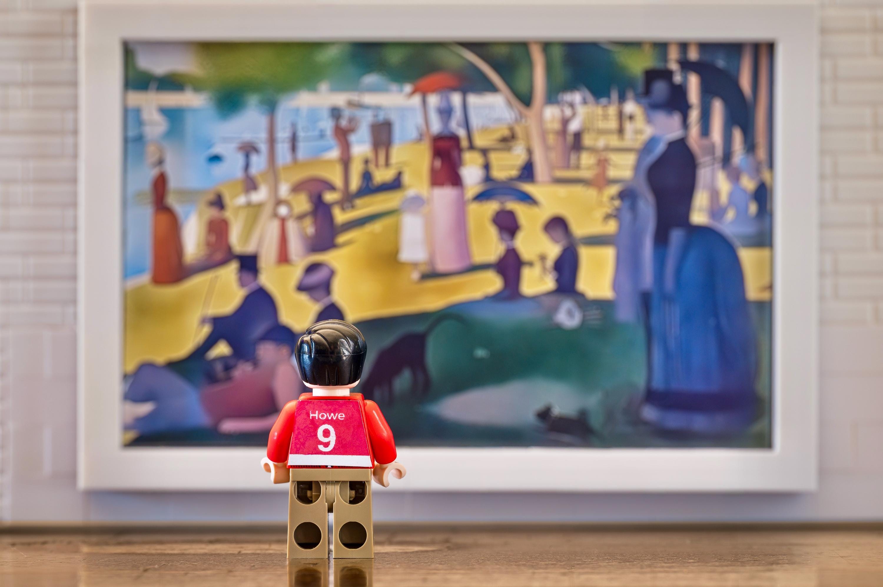Bring a beloved cinematic moment to life with this beautifully staged LEGO photography print inspired by Cameron Frye’s quiet, emotional stare at A Sunday Afternoon on the Island of La Grande Jatte in Ferris Bueller’s Day Off. This miniature recreation captures the calm, introspective mood of the museum scene with soft lighting, museum-like depth, and a nostalgic 80s vibe.