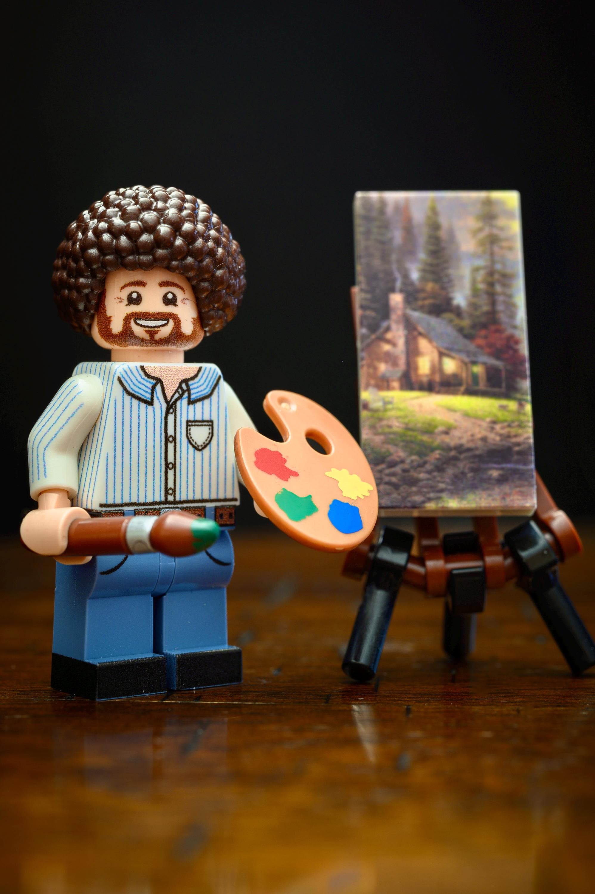 This original photography print features a calm and cheerful painter at work, bringing a peaceful landscape to life one brushstroke at a time. Inspired by the soothing, joyful spirit of classic TV painting shows, this scene captures the magic of creativity, patience, and finding beauty in simplicity.