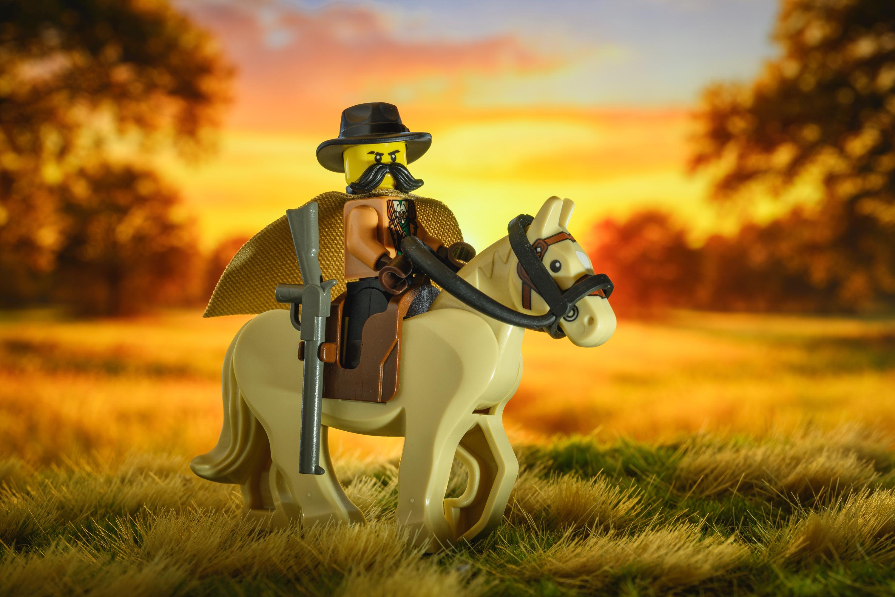 This original photography print captures a rugged cowboy sheriff in pursuit of a fugitive across a dusty western landscape—reimagined in LEGO with cinematic detail. The scene evokes the tension of a classic Wild West chase, where every decision matters and the line between law and outlaw is razor thin.